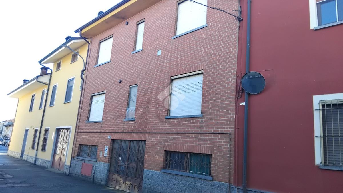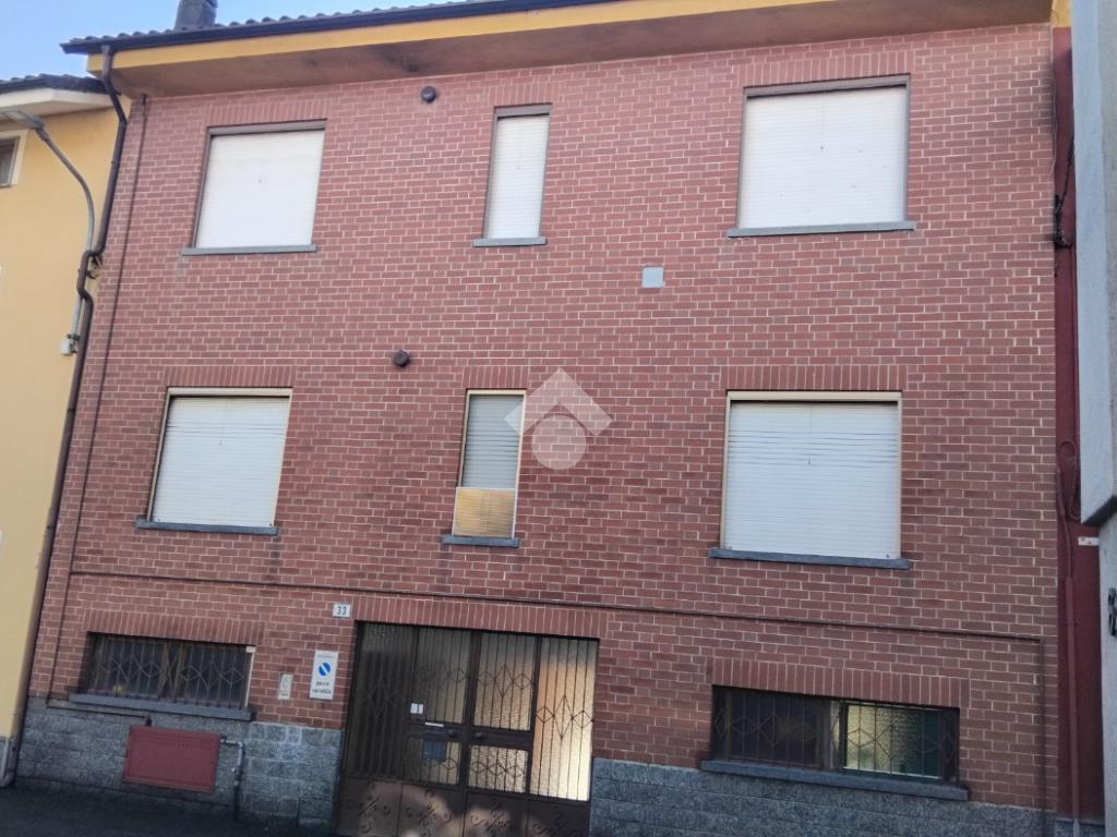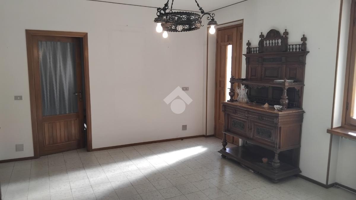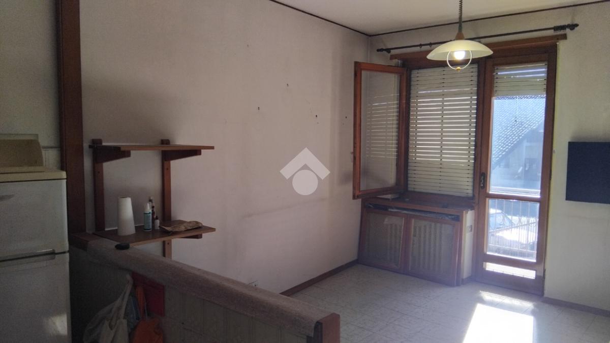 In centro paese alloggio indipendente in bifamiliare situato al primo piano composto da una cucina grande, soggiorno, disimpegno, 2 camere e bagno. Al piano terra troviamo box e cantina attualmente ambiente unico. Nel cortile un posto auto scoperto, sotto la tettoia magazzino e cantina con soppalco al piano primo con adiacente zona di giardino privato.