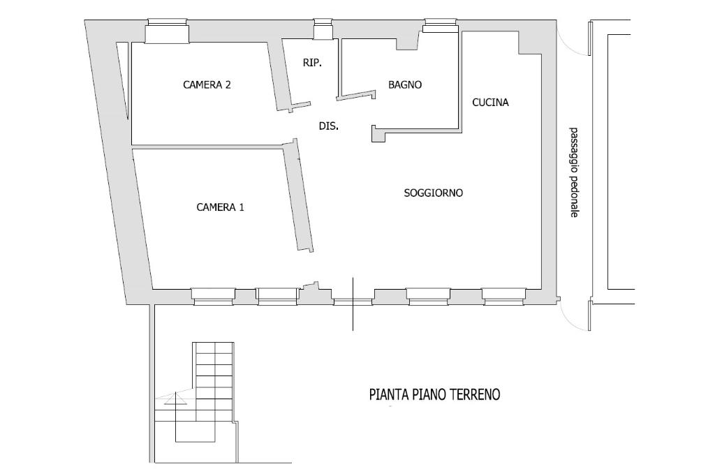L'immobile è disposto su due livelli con scala esterna, con possibilità di creare due unità abitative.