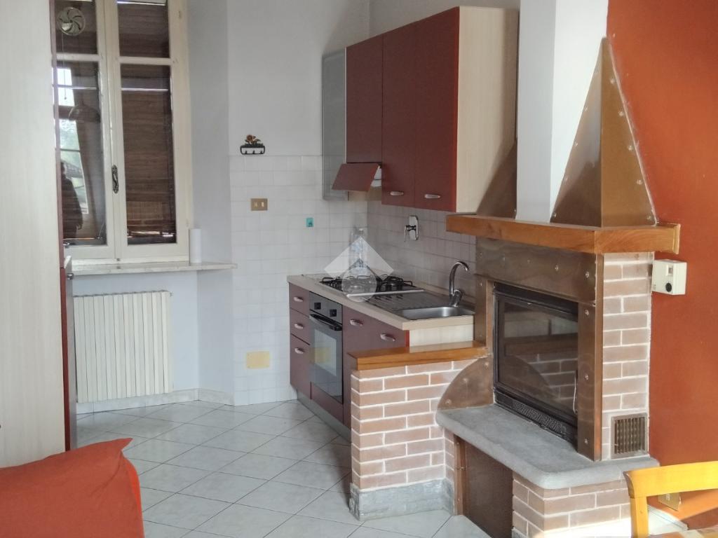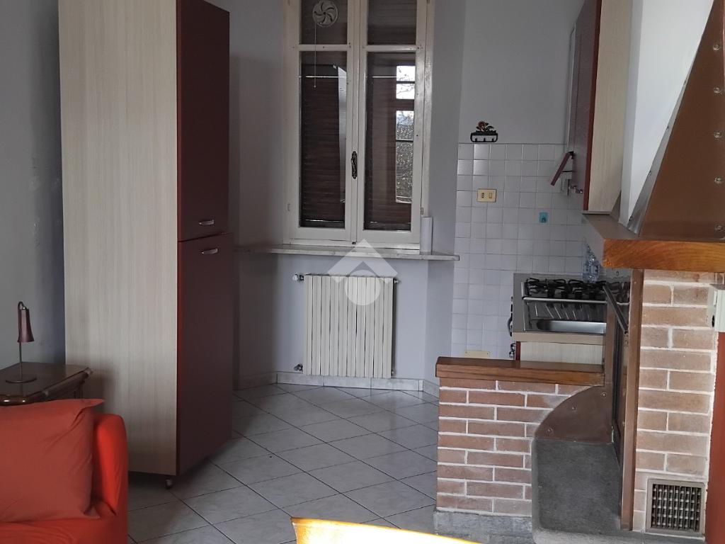 L'alloggio è composto da cucina con camino a legna, camera e bagno; al piano terreno posto auto coperto dotto la tettoia con ripostiglio.
