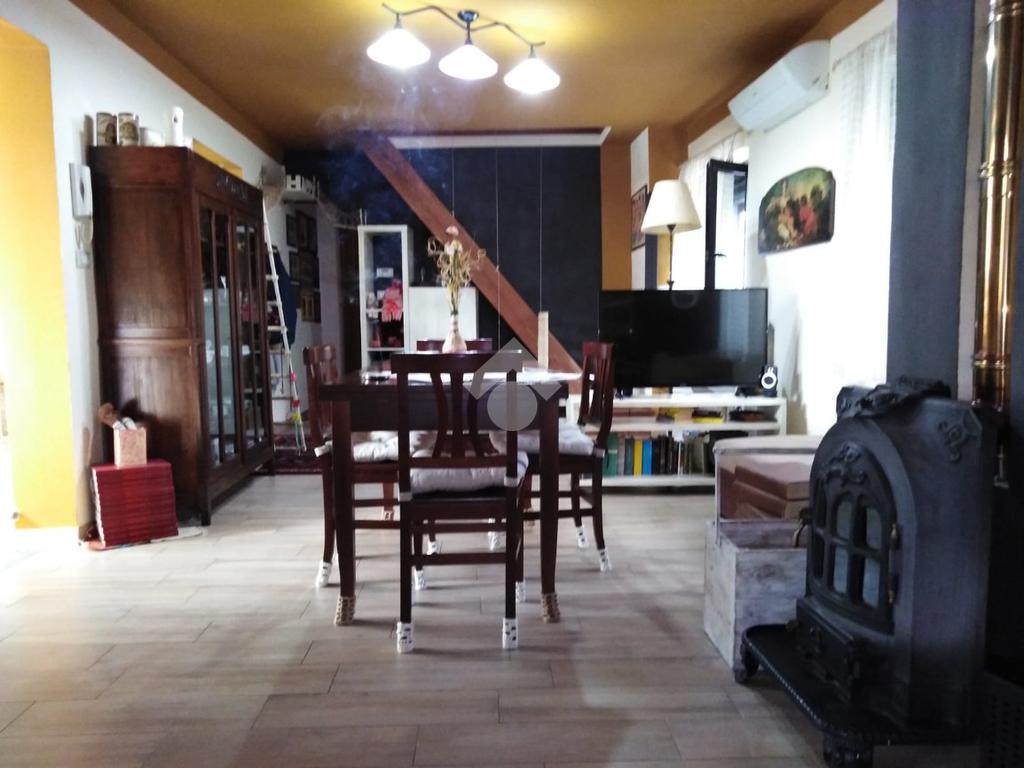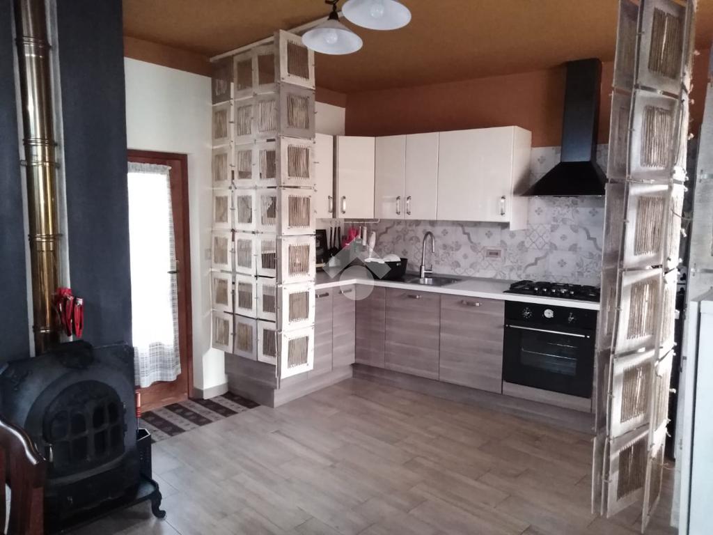 In centro paese casa indipendente totalmente ristrutturata con box e cortile. L'immobile è composto per la parte abitativa al piano rialzato su un unico livello dove troviamo un ampio salone e cucina, uno studio verandato, una camera e un bagno, il soggiorno dispone di una canna fumaria dove attualmente c'è una stufa a pellet.