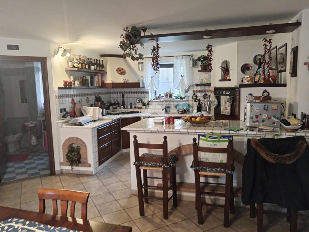 In centro paese casa indipendente con cortile e giardino. L'abitazione di discreta metratura è composta da ingresso su ampio salone/taverna con cucina in muratura, un bagno, ripostiglio e altro locale che da l'accesso alla scala che porta al primo piano dove troviamo un soggiorno, cucina, 2 camere e bagno. Mentre al piano mansardato locale unico grezzo alto. Un cortile e un giardinetto.