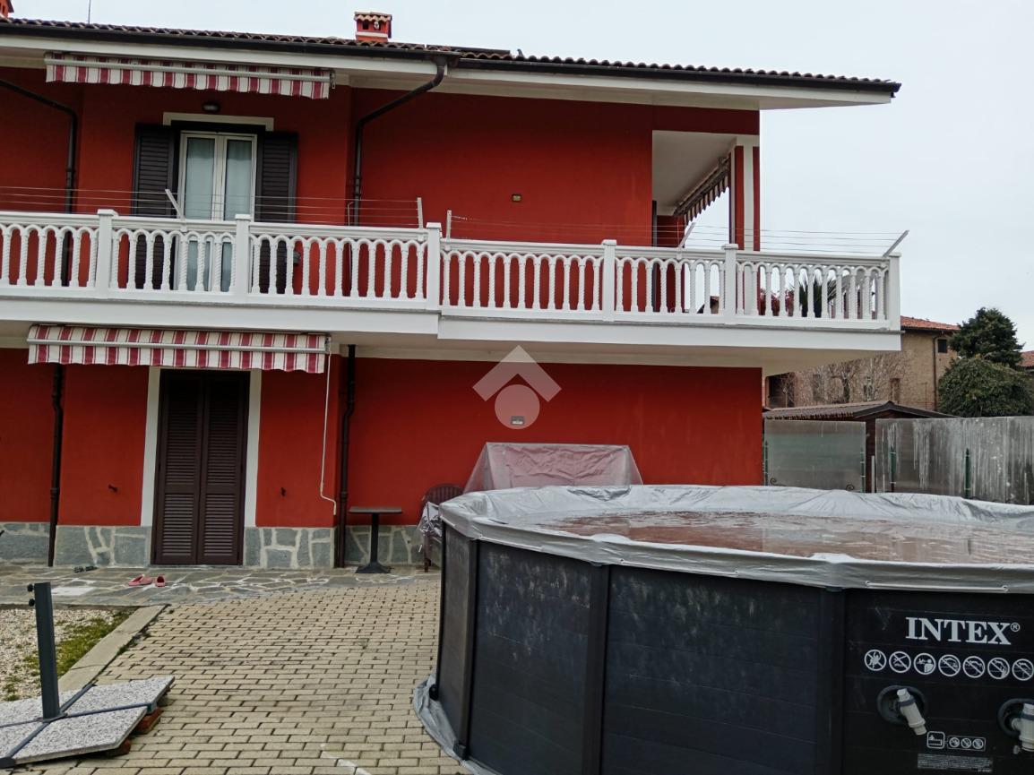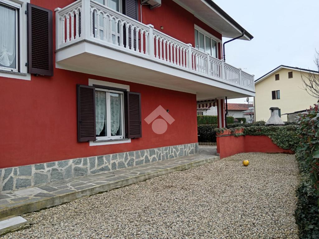 In centro paese ampia villa indipendente su tutti e 4 i lati con un giardino circostante di oltre 1000 mq. La villa è composta da 2 unità indipendenti di oltre 180 mq ciascuna. Al piano terra troviamo la prima unità composta da ingresso, soggiorno e cucina in ambiente unico, 2 camere e bagno, cantina e centrale termica. Mentre al primo piano troviamo l'altro alloggio più grande composto da ingresso, soggiorno, cucina, 3 camere e bagno. Ampia veranda e balconi che girano su tutti i lati. Al piano mansardato un ambiente unico grezzo, vista l'altezza è possibile creare un'ulteriore unità abitativa. L'immobile dispone di un'autorimessa per più macchine.